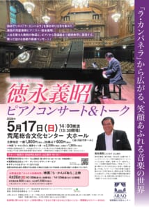 ※徳永義昭ピアノコンサート&トーク公演については未就学児入場可能・指定席車椅子席をご希望の場合は、荒尾総合文化センター(時間9:00〜17:00)までお問い合わせください。