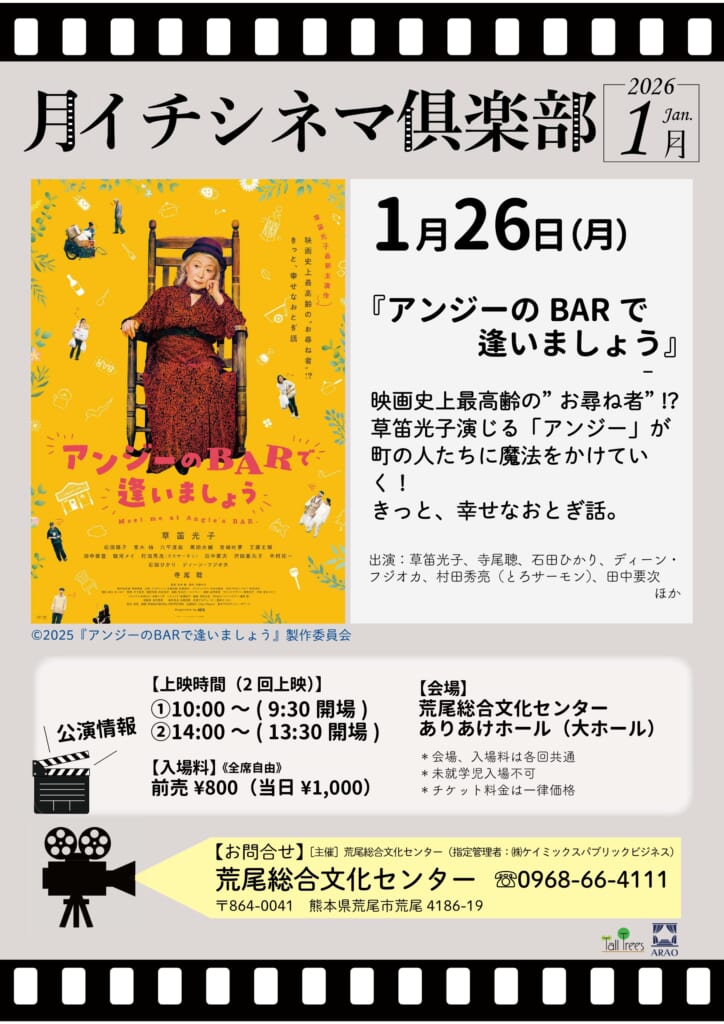 PICKUP!! 映画『アンジーのBARで逢いましょう』 オンライン販売 発売中 【日程】 2026年1月26日(月) 開場 9:30 開演 10:002026年1月26日(月) 開場 13:30 開演 14:00 【会場】 ありあけホール(大ホール) さらに詳しく チケット購入