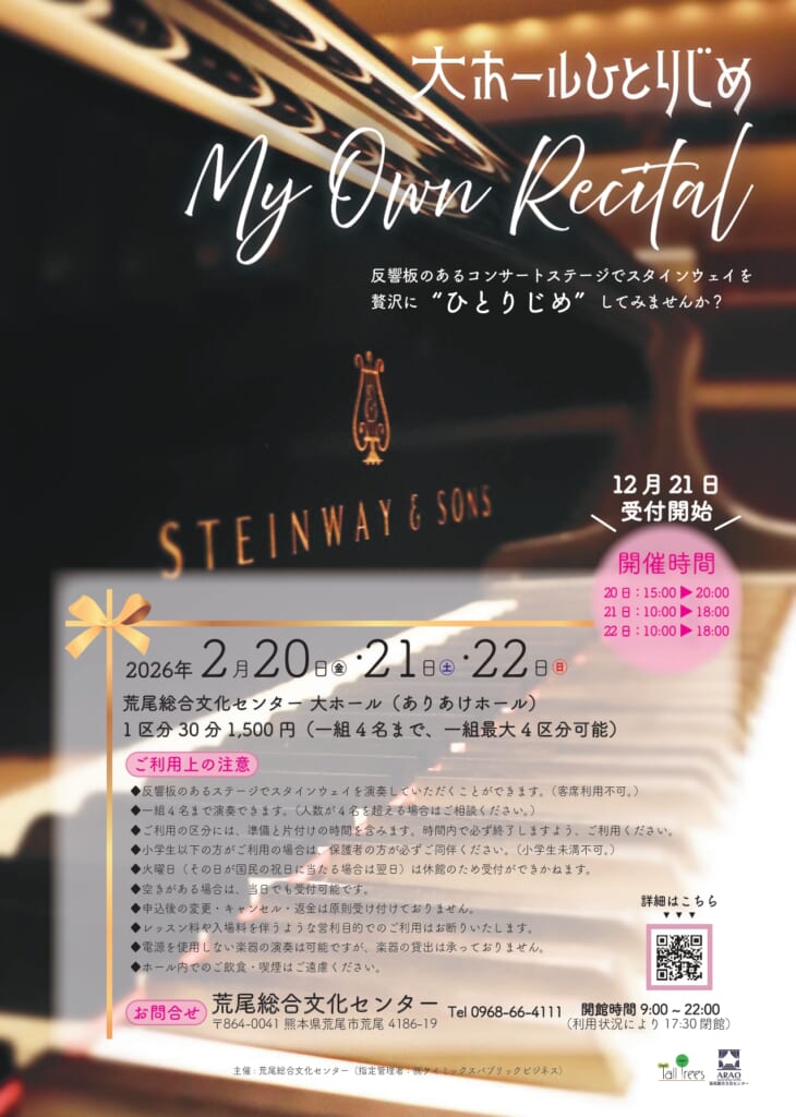 PICKUP!! My Own Recital 【日程】 2026年2月20日(金) 開演 15:002026年2月21日(土) 開演 10:002026年2月22日(日) 開演 10:00 【会場】 ありあけホール(大ホール) さらに詳しく